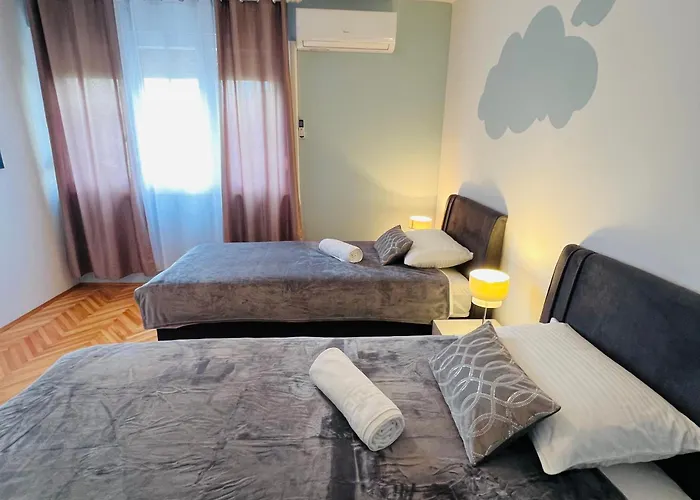 דירת ספליט Nice נמצאת בקרבה של 1 ק"מ על קתדרלת דומניוס הקדוש. נכס זה מורכב מ-2 חדרי שינה, 2 חדרי אמבטיה ומטבח מאובזר .